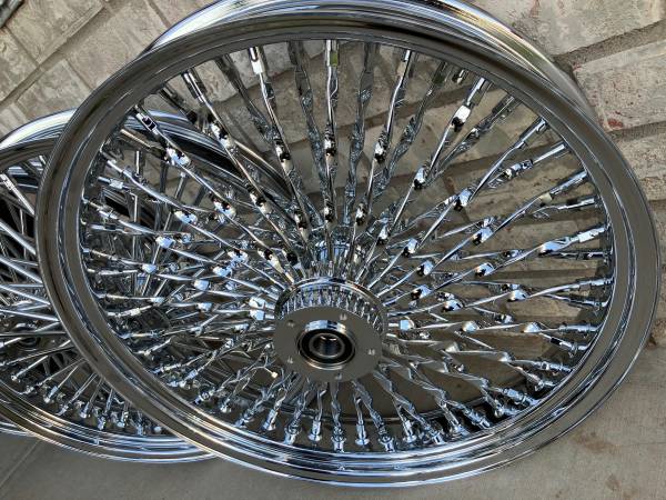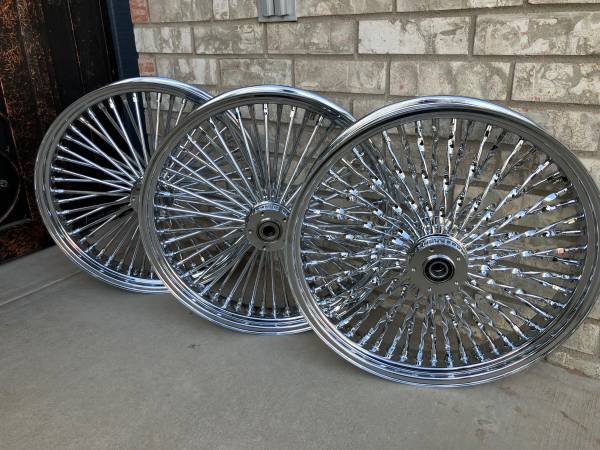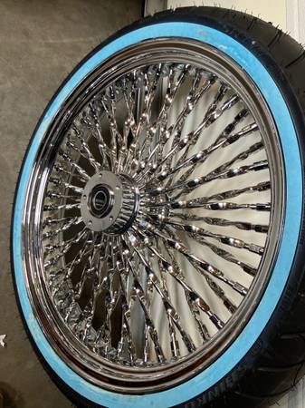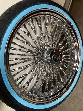 Here I Have Fat Daddy TWISTED SPOKES by Dna ---21 x 3.5 fronts ----all years available--Abs Aswell---White wall tires and black wall tires available also---