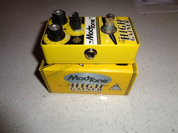 ModTone High Gainer Super Distortion in mint condition, goes from a mellow laid back gain setting to the sound of tubes on the verge of catching fire! In addition the High Gainer features a set of concentric EQ knobs that control both high and low frequencies independently.