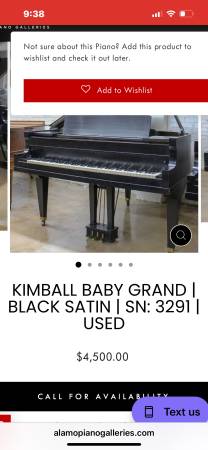 Kimball Baby Grand piano in excellent working condition......Ebony gloss satin with bench...........5 ft wide by 5 ft long.....see pictures...beautiful parlor piano that rarely gets played....will need to be moved by professionals.....1,995.00…obo....worth over $4,500..............may consider trade for gold/silver/guns......