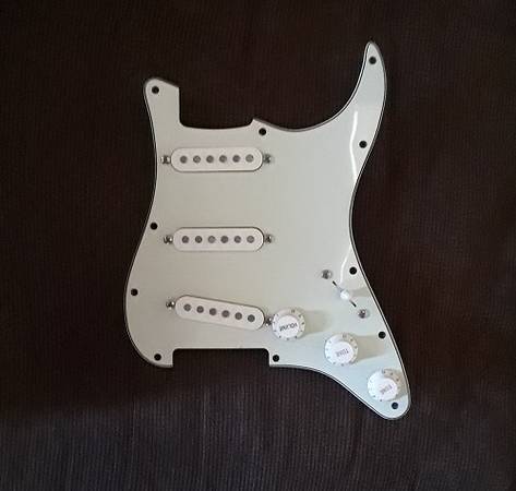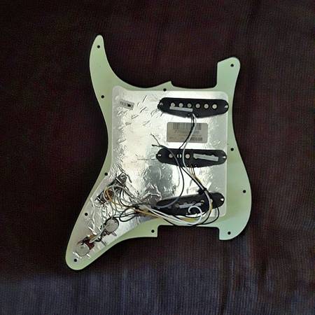 Squier Pickups work and sound great - cream color - pickguard is mint green - text 915 three two nine - eight seven two three - near Montwood High School on the east side - 50 bucks