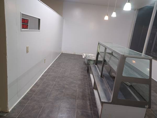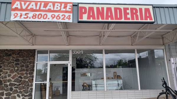Window Front Commercial Bakery/Kitchen for Rent located on a busy four unit commercial shopping center with parking. 1200 Sq. Ft. with Hood Exhaust over a 6 Burner Wolf Stove with Griddle, Low Boy Stove, Large 3 Compartment Sink, Display Case, Baking Sheets, Prep Table, Dough Rising Cabinet, Commercial supply Rack, Bakers Flour Rack, and 2 mini stainless steel Sinks. Call Fred at 915-800-9624 for more information.