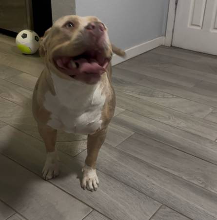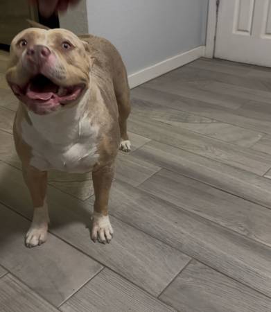 6 months old female,American bully xl ABKC papers. Complete vaccines.and dewormed. For more info text