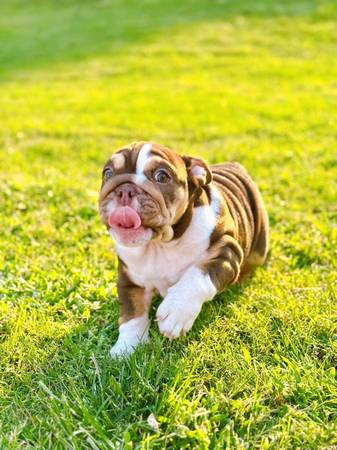 Beautiful female English Bulldog, 4 months olds, vaccinated & chipped, looking for a responsable and loving new family. Very nice rehoming fee. More info 9one5 six1five 9oneone6