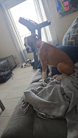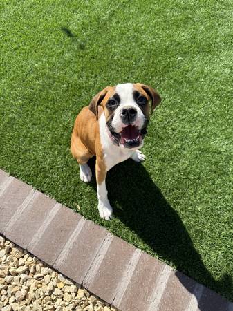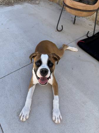 Boxer puppy. 6 months old female. 1st shots. For more info, please text.
