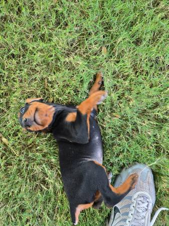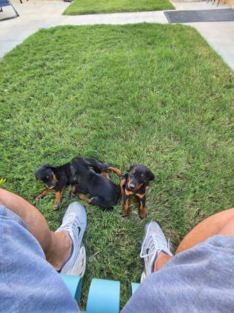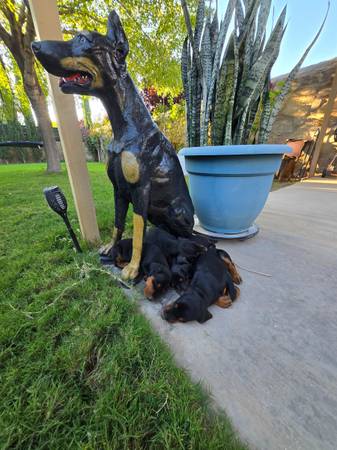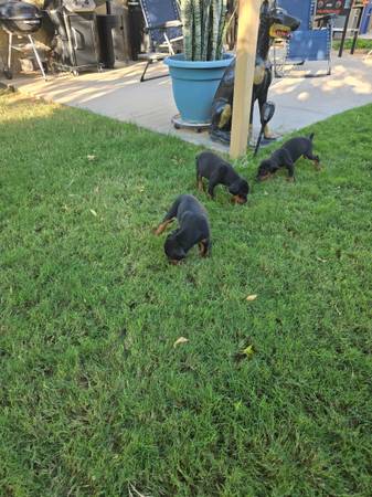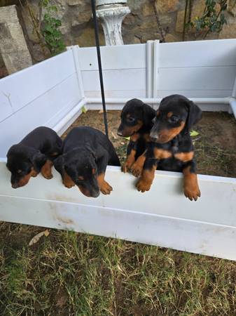 Four Doberman puppies forrehoming; they are 6 weeks old and have their first shots and dewormed. Affordable rehoming fee. 915 three 5 5 six O O 5 for more info or reply via this service. Purebred...