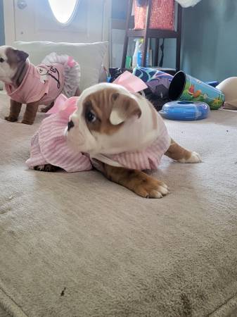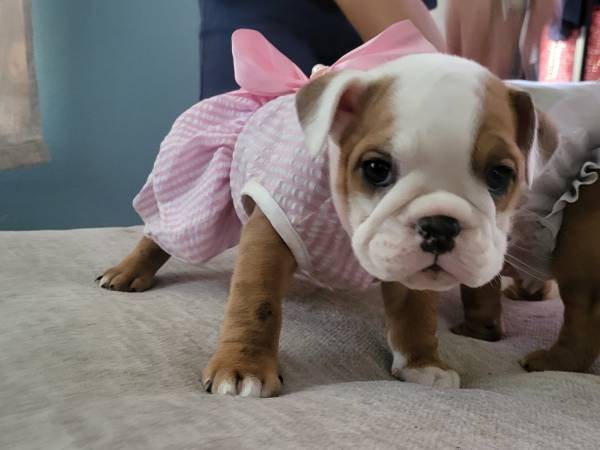 Beautiful English Bulldog Female Puppy a rehoming fee applies. Text me for more information at .