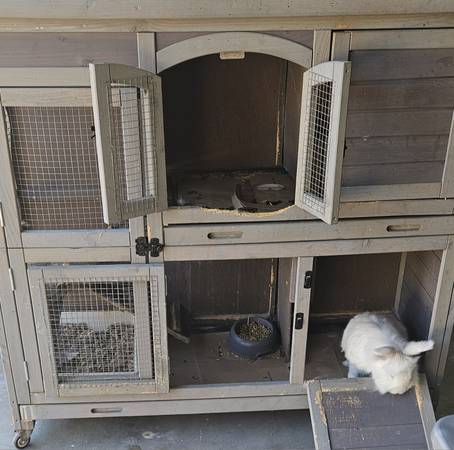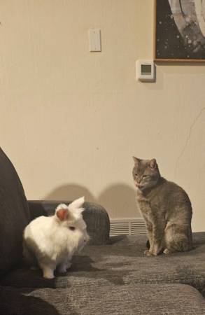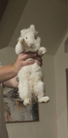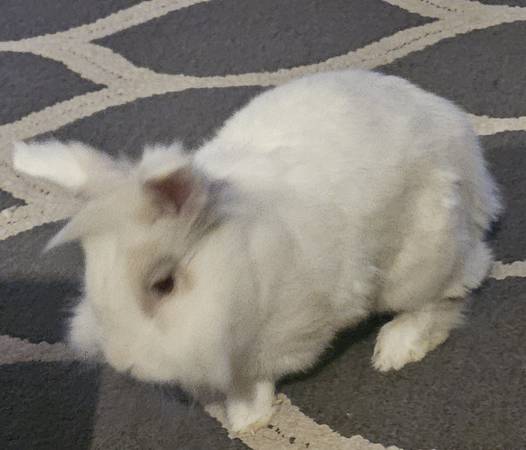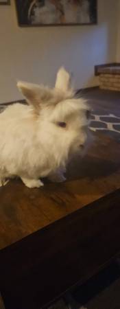 Mixed Lion Head Bunny. He is 3 and half years old. He is very calm and great with kids and other animals. Loves baths. He was fully potty trained until we co-housed him with a guinea, which he regressed. The Ginny is now gone for a week and he is already showing progress with using his litter again. Great family pet and very therapeutic. My daughter went off to college and couldn't take him.