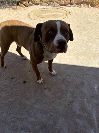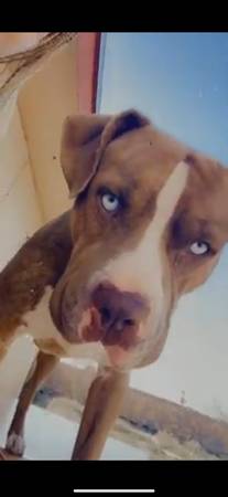 Red/blue nose pitbull male with tiger stripes. Has white/blue eyes. He does not get along with male dogs, he does not start fights and avoids them but if feels attacked he will defend himself. He does get along with female dogs. Very calm and loves to sleep indoor when allowed. Is house trained and does sleep in crate time from time. He is 6 years old. Loves attention.