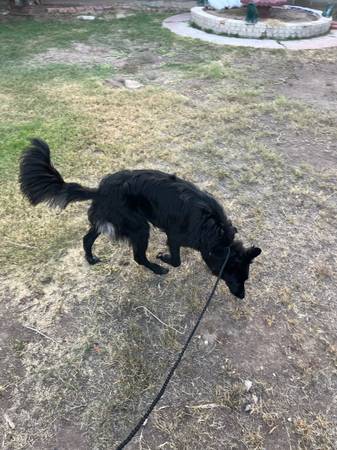 Black male German shepherd, 9 months old, vaccinated and dewormed, healthy with long coat of fur. Potty trained, knows sit, down, wait and okay. Very good boy.