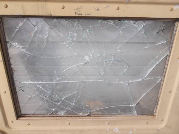 glass, hinges and stop strap need to be replaced, metal body is straight