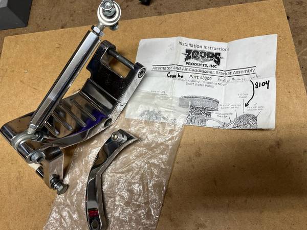 This is a lightly used alternator bracket by Zoops #8104. Designed for later sbc where the heads have mounting holes. This will mount your alternator on the driver’s side, all hardware included plus instruction sheet.