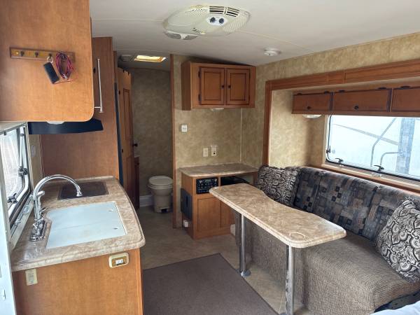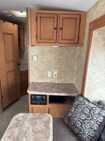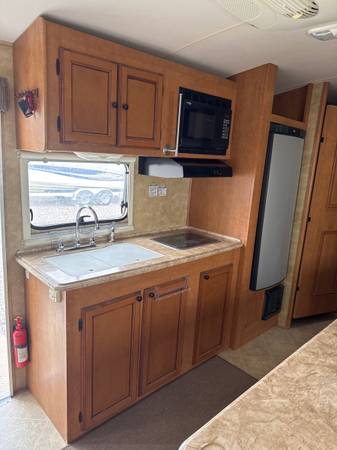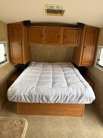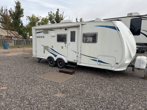 Single Slide Edge Travel Trailer w/Rear Full Bath Including Tub, Sink, Toilet and Wardrobe, Slideout Jackknife Sofa, Refrigerator, Double Kitchen Sink, 2 Burner Cook Top w/Microwave Above, Front Queen Bed w/Storage Below, Shirt Closets w/Nightstands Below Both Sides of Bed and More!