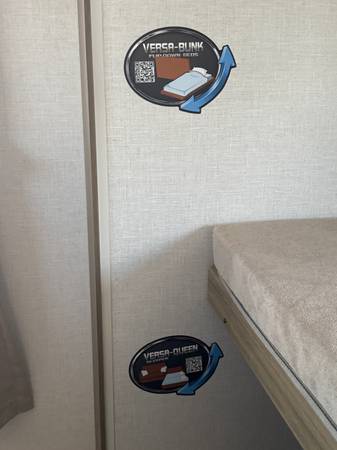 Get ready for your next weekend getaway to your local state park with this double-slide Wildwood Platinum travel trailer. The private bunkhouse is perfect for the kids, and you can enjoy the front private bedroom with a custom king bed. This unit also includes a U-shaped dinette and sofa which create the Versa Lounge, and the kitchen features an L-shaped countertop which allows you to have more space to cut and prepare a meal. The double-bowl sink is perfect for cleaning up afterward, and you'll love how convenient the full bath is with its own exterior entry door.