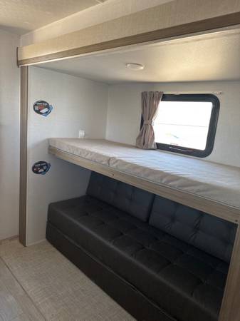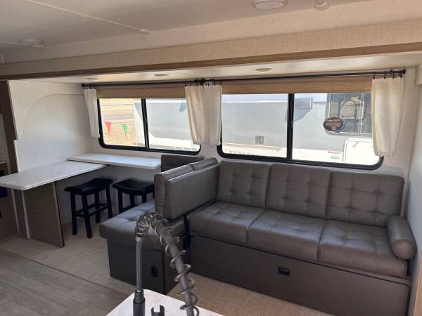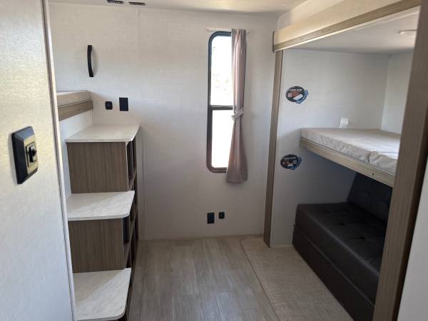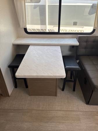 Enjoy years and years of memories with any one of these Forest River Wildwood travel trailers! They are built with a Dicor PVC roof membrane, a powder coated I-beam frame, and an aerodynamic front radius profile for an easier tow. The triple seal slide out system prevents water from seeping inside and keeps it outside where it belongs. The Best In Class Value Package includes upgraded designer furniture, seamless countertops with no T-mold, and two zone residential soundbars with FM, Bluetooth, HDMI and USB. You will also appreciate the heated and enclosed Accessi-Belly with removable underbelly panels, the power tongue jack with an LED light, and the designated CPAP storage. Some new upgraded features include: an upgraded slide-out fascia, a Versa-Tilt bed, an upgraded shower head, and a 60K BTU tankless water heater, and so much more!