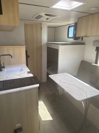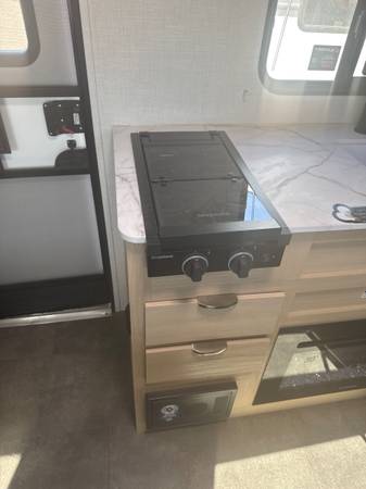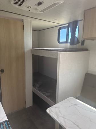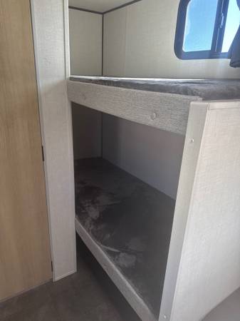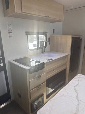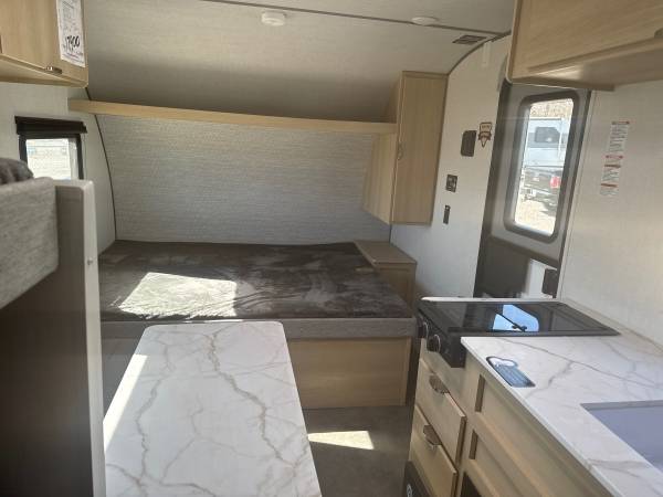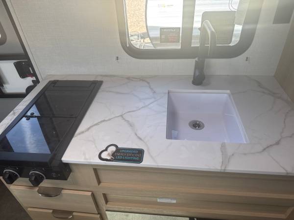 This Limited Edition Wildwood FSX travel trailer provides great value in a lightweight model! Included at no extra cost are a power awning, a 13,500 BTU air conditioner, full-size spare tire, and 4.5 cu. ft. refrigerator. There's also a walk-on roof and prep for a ladder. There's room to sleep six, with a queen bed, a pair of bunk beds, and a convertible sofa. Extra thick luxury vinyl flooring is comfortable underfoot and easy to keep clean. The exterior storage has a large baggage door so you can fit those bigger items. The Limited Edition Camp Ready package includes a two-burner cooktop, 5,000 BTU fireplace, and a 20 lb. LP bottle.