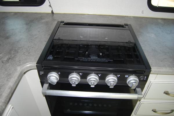 21-in Furrion range with piezo ignition and glass stovetop cover