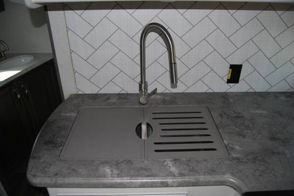 Has 60-gallon freshwater tank, a 30-gallons waste (black) water tank, and a 60-gallon gray water tank.