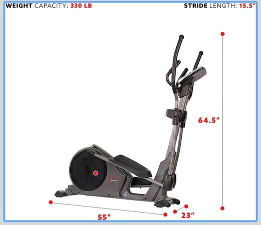 Sunny Health & Fitness Programmable 16 Electro-Magnetic Elliptical Cross Trainer Exercise Machine, Full-Body Cardio Equipment w/ 24 Pre-Built Workouts, 330LB Capacity. $250 OBO. Gently used.