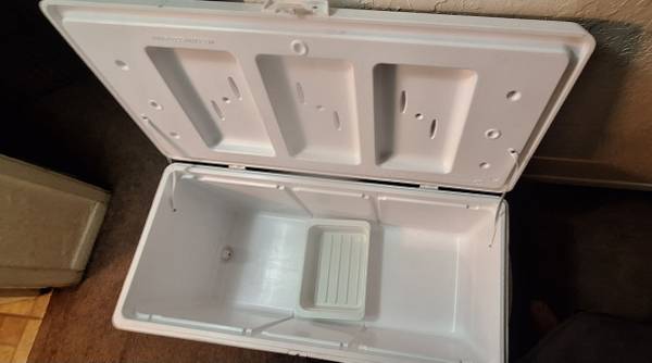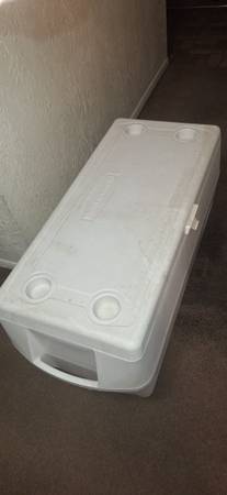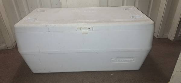 This oversized Rubbermaid ice chest/bench is also perfect for those large outdoor family and friend gatherings! Moving soon so pick up only.