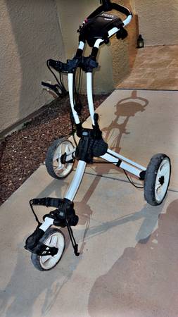Golf push cart is in great condition and comes with an umbrella holder.
