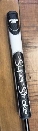 New Scotty Cameron Squareback 34 inch Double Bent 34 inch Right hand putter with a Super Stroke Tour 2.0 putter grip.