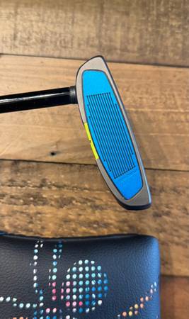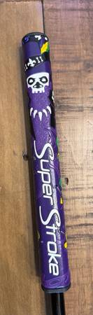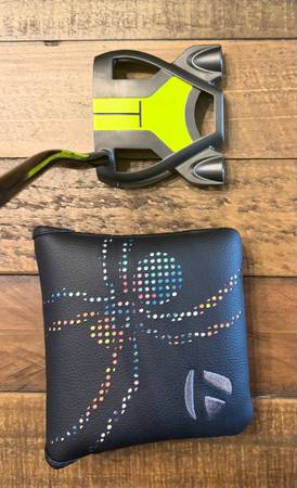 New TaylorMade My Spider Custom 34 inch right hand putter with a Super Stroke Tour 2.0 Mardi Gras putter grip.
