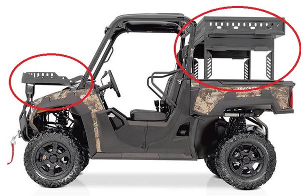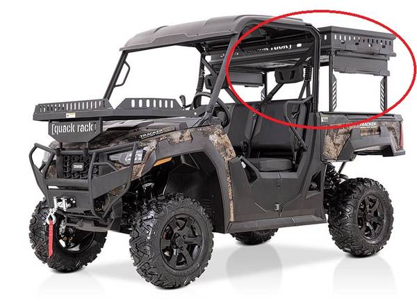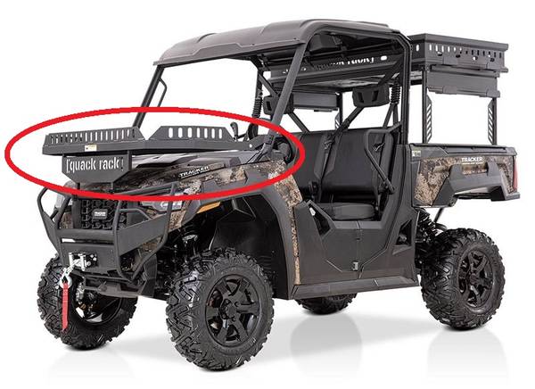 THE QUACK RACKS ARE DESIGNED TO MOUNT ON YOUR UTV FOR CARRYING THE SMALLER GEAR SUCH AS BLIND BAGS, GUN CASES, DOG STANDS, BRUSH CUTTERS, AND MUCH MORE. CREATED WITH THE USER IN MIND, THE FRONT RACK HAS BEEN INCORPORATED WITH A FOLDING DESIGN ALLOWING YOU TO QUICKLY ACCESS THE HOOD AREA.