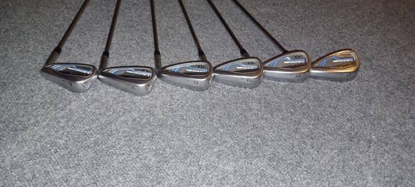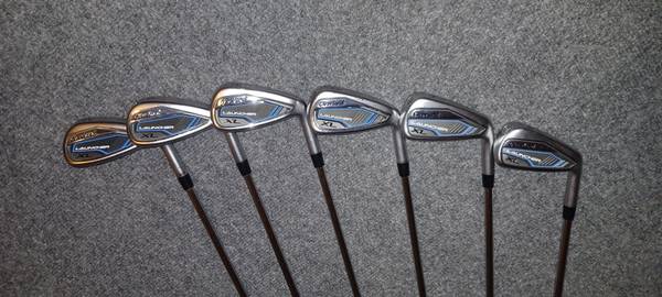 Like new Cleaveland Launcher XL iron set, right hand, steel shaft, stiff, new grips D, P, 9, 8, 7, 6. Set of 6 irons