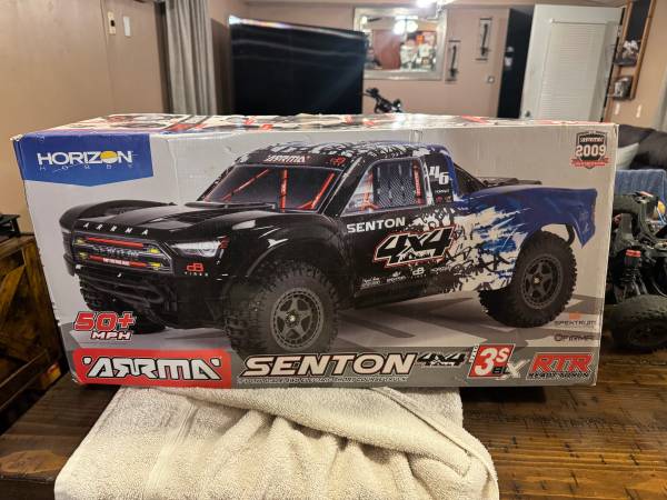 ARRMA SENTON 4X4 3S BLX BRUSHLESS 50+mph 1/10TH 4WD SC BLUE-Comes with Remote, Lipo Battery original box and charger also with 3 New tires-Come over and test it out-Im 15 minutes from the Outlet Mall-Thanks For Looking También Habló Español-Call or Text- show contact info