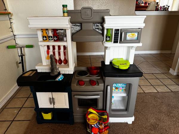 I have a toy kitchen that comes with pots and utensils and play food. It’s been in great condition and still has everything from when I bought it. Selling for $100 obo, if interested please text me.