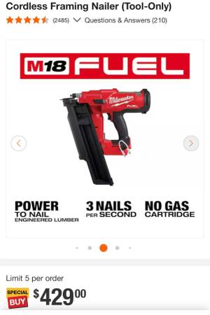 TOOL ONLY NEW M18 MILWAUKEE FUEL 21 DEGREE FRAMING NAILER MODEL # 2744-20 TOOL ONLY NEW NEVER USED