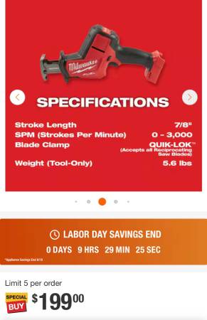 TOOL ONLY NEW MILWAUKEE FUEL M18 HACKZALL Model # 2719-20 NEW NEVER USED TOOL ONLY