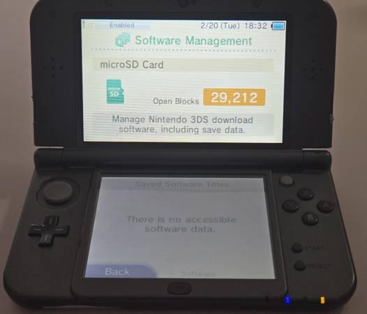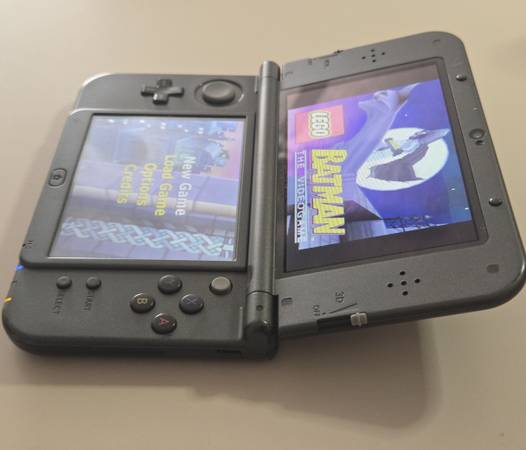 The New Nintendo 3DS XL includes a newly installed original battery and a new charger. It comes with three physical games. Both the volume and 3D functionalities are operational. While the device currently charges without issues, the battery port will require replacement in the near future. The console exhibits normal wear and tear.