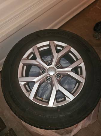 Selling 2022 jeep grand cherokee limited original wheels. All in good condition. Three tires 30 percent life left one tire with 100 percent life left. 9one52one7-629one text or call. Best offer.