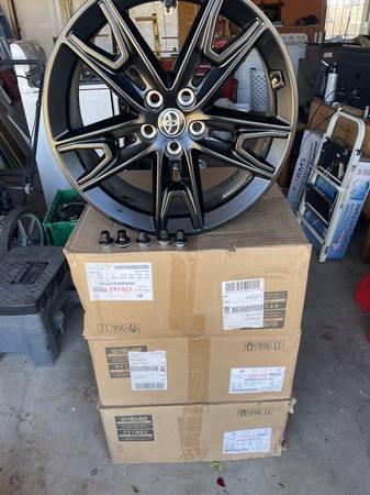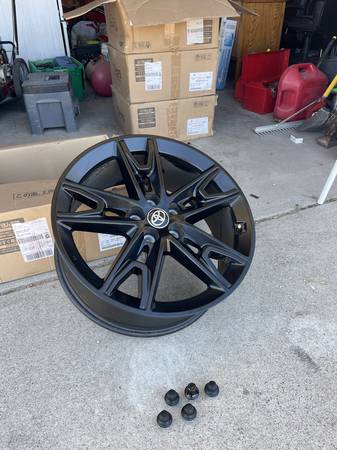 New 20" x 8.5" black rims from a Toyota Highlander with locking lug nuts. $500.00 The Toyota emblem can be removed.