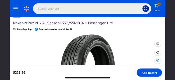 Full set of Nexen 225-55-18 tires $265