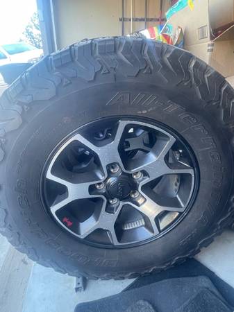 5 rims with tires. Tires 32 in. Rims 17 in. 0 offset.