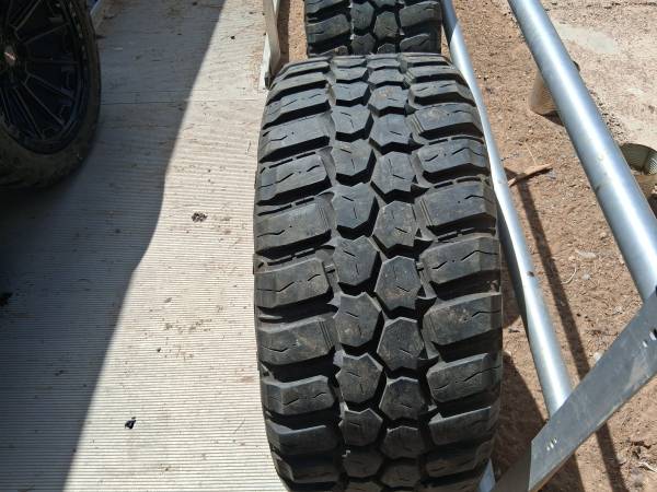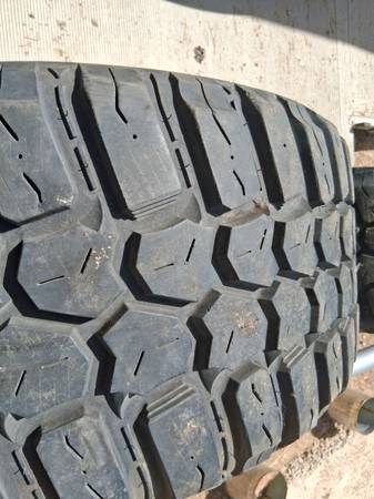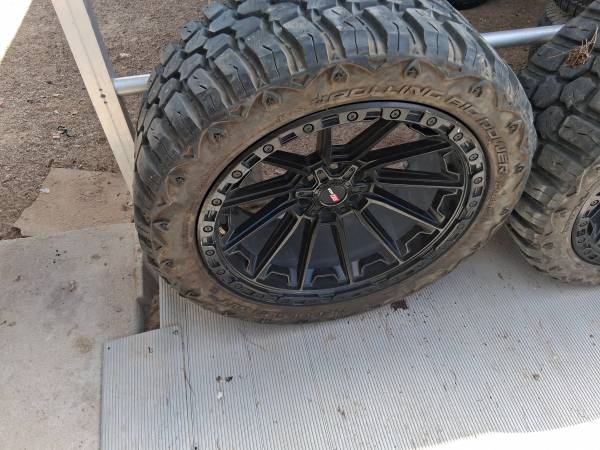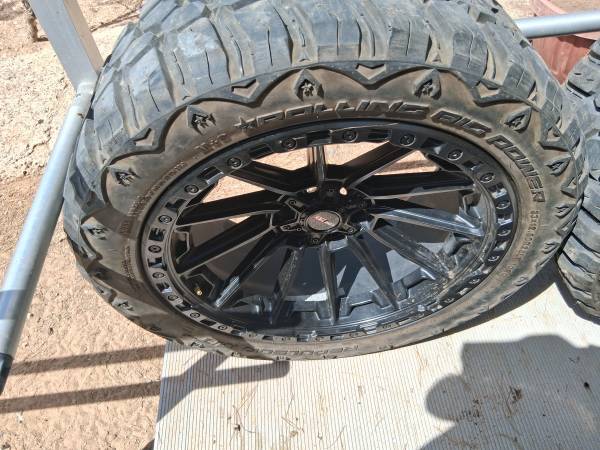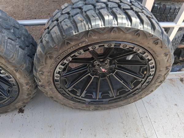 rims and tires. tires are prettily new size is 33 x 12.5 r22s. tires have about 10000 miles on them. i hade the rims on a 2013 ford 6 hole but rims are 6 holes universal. ready to install on any 6 holes. Lugnut's are included for a ford f150. 1000. obo or trade for some chrome rims call show contact info